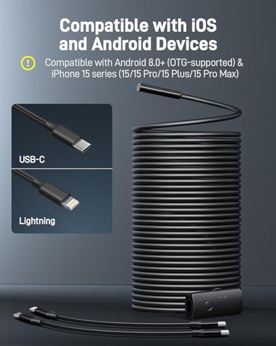 - Cámara Serpiente de Resolución HD: Capture fotos HD y videos fluidos con la cámara del endoscopio, todo almacenado directamente en su teléfono. No más transferir medios a través de USB para compartir con otros.