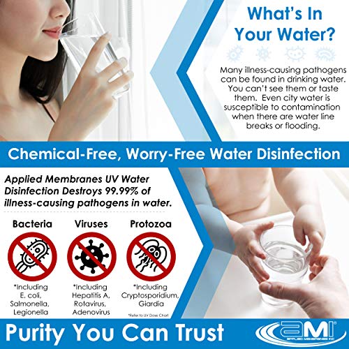 - Agua potable segura para tu familia: destruye el 99,99% de los patógenos que causan enfermedades en el agua, incluyendo bacterias, virus y parásitos protozoos. Las alarmas visuales y audibles te aseguran una desinfección adecuada.