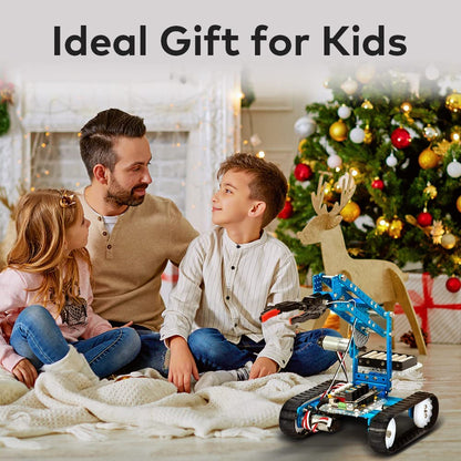 - Kit de construcción de robot 10 en 1: el kit de construcción de robot definitivo tiene más de 160 piezas mecánicas y módulos electrónicos que se pueden utilizar para construir tu propio robot para diferentes proyectos robóticos. El kit de robot definitivo se puede construir con 10 modelos de robot, como brazo de robot, tanque de control remoto. Hay muchas guías de usuario y recursos de aprendizaje disponibles en línea que facilitan la construcción y la codificación.