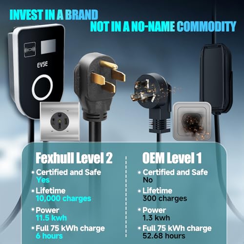 Cargador EV de nivel 2 48Amp 240V, cable de 25 pies, EVSE con conector J1772, enchufe NEMA 14-50, WiFi habilitado, pantalla inteligente, cargador de coche eléctrico con tarjeta RFID Fexhull