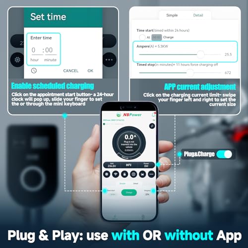 - Carga más rápida y ahorro maximizado: hasta 7 veces más rápido que un cargador de salida estándar, proporcionando 40 millas de alcance con cada hora de carga. El hogar ofrece amperaje ajustable: 48A, 40A, 32A, 24A, 16A, el cargador EV para el hogar admite la gestión de aplicaciones y conectividad Wi-Fi, puedes ajustar la intensidad actual, programar el tiempo de carga y monitorear los datos de carga en tiempo real. Establecer un tiempo de carga programado durante las horas pico reduce las facturas de electricidad y le ahorra dinero.