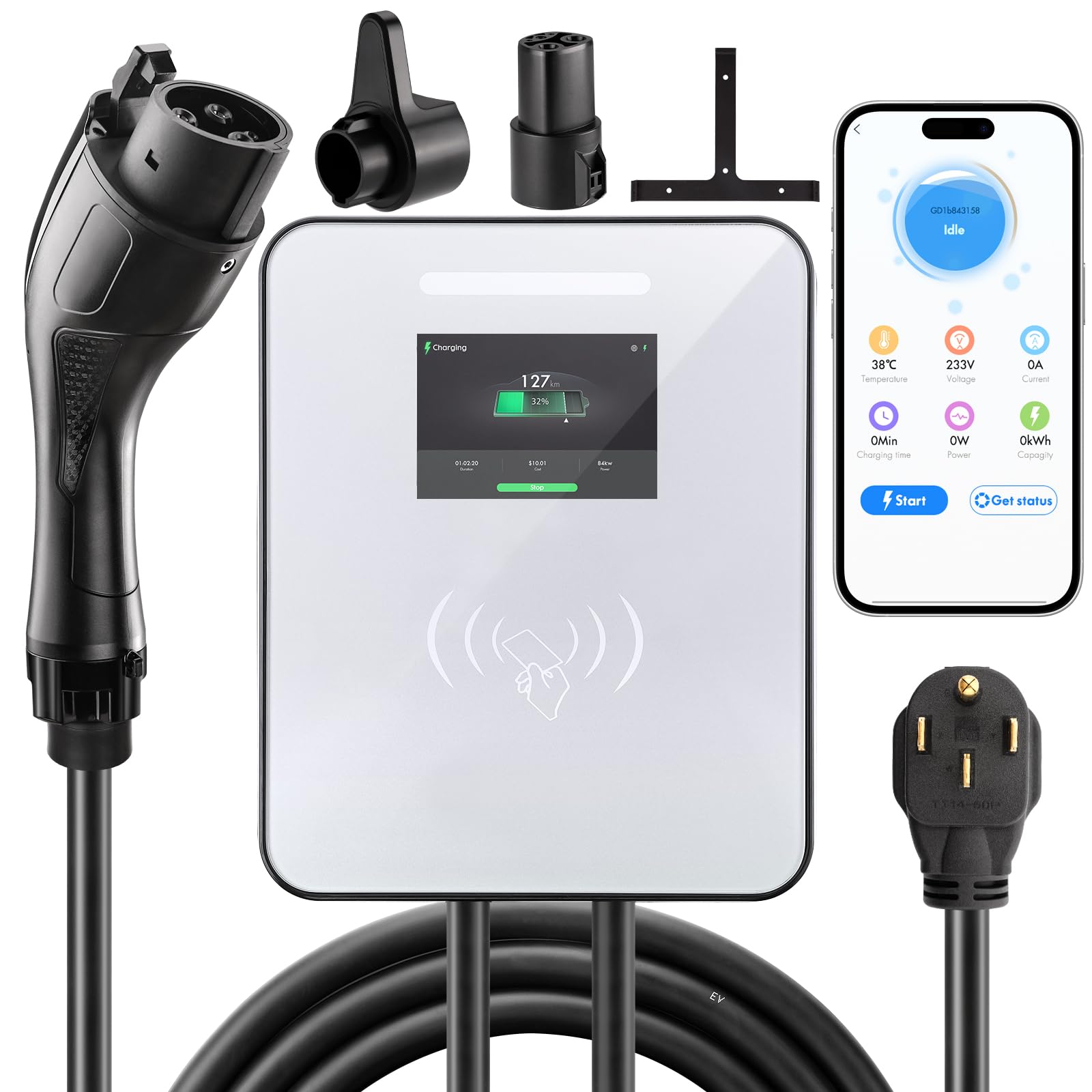 Cargador EV de nivel 2 de 48 amperios, 240 V, 11.5 KW y 25 pies con enchufe NEMA 14-50 y aplicación inteligente SAE J1772, carga programada, cable flexible de 25 pies