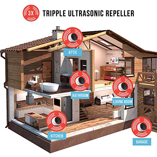- ✅ Este repelente electrónico de plagas es ideal para grandes habitaciones, cocinas, garajes, áticos y sótanos.