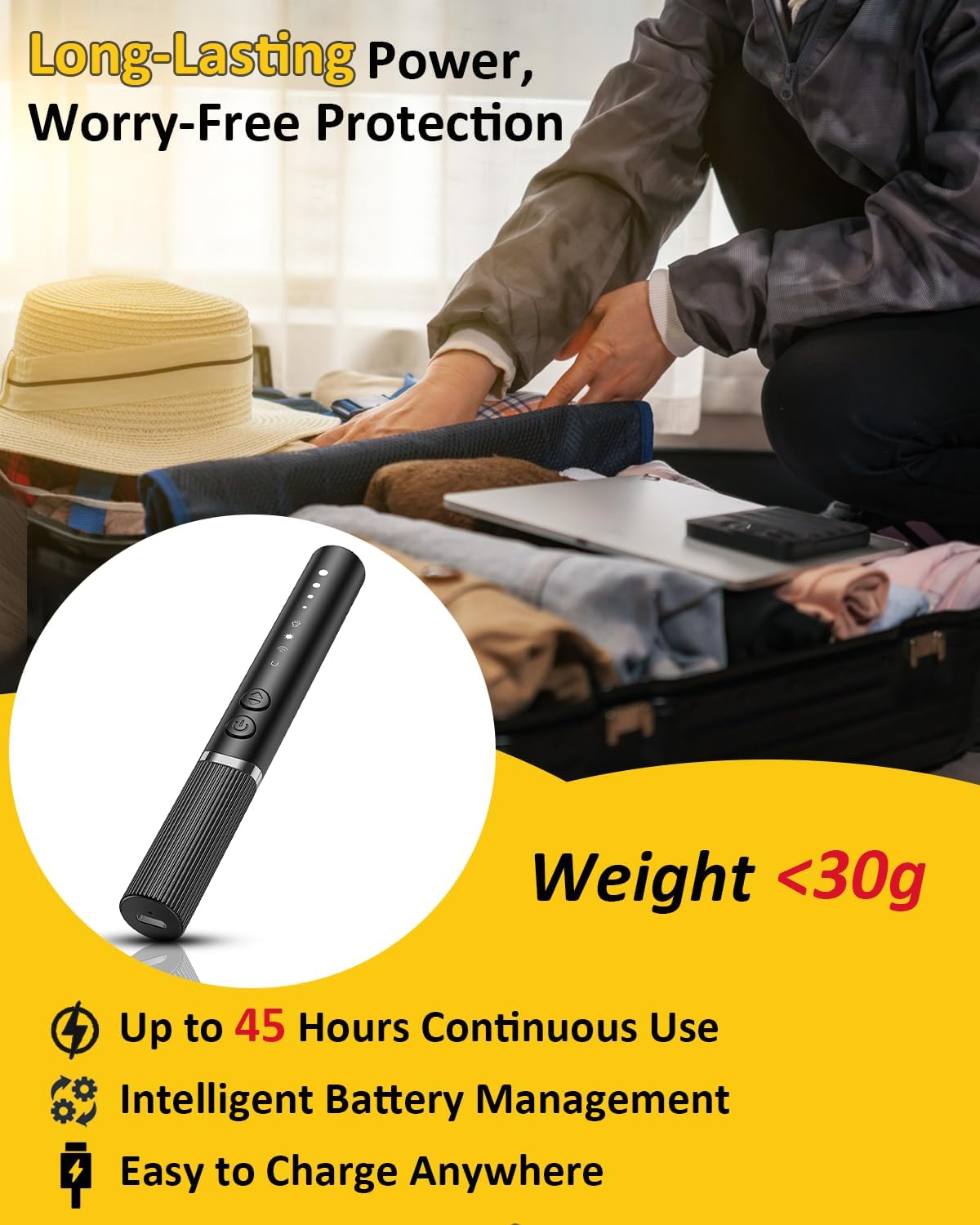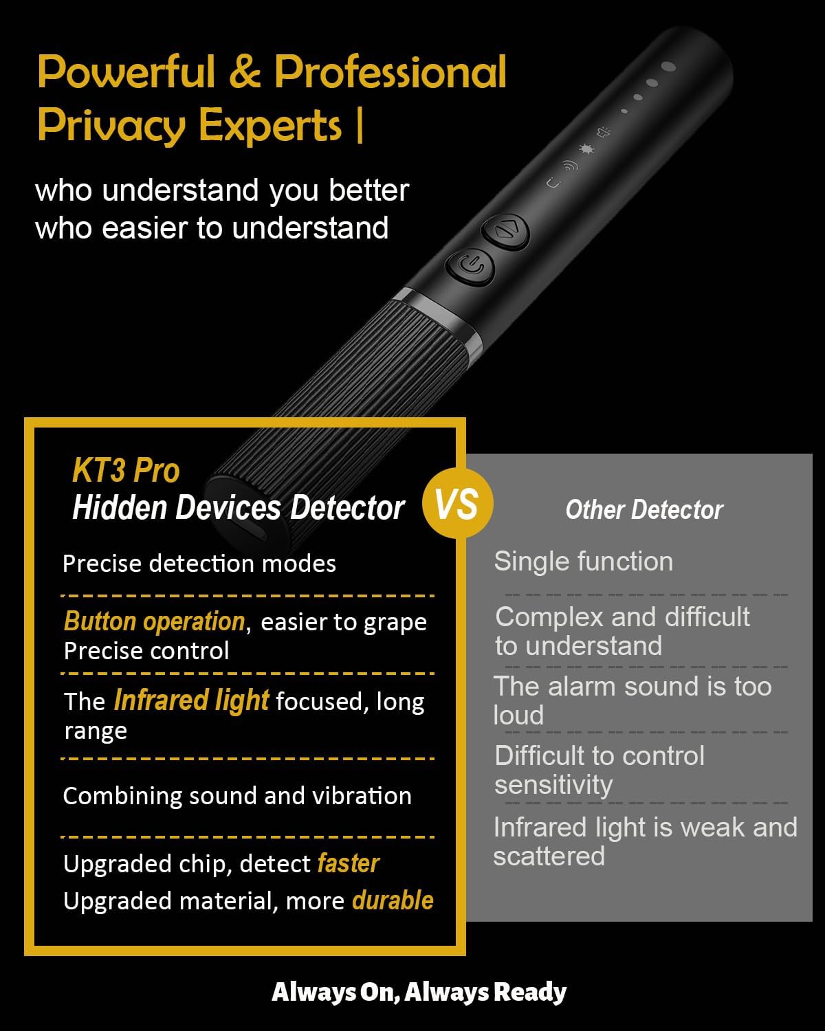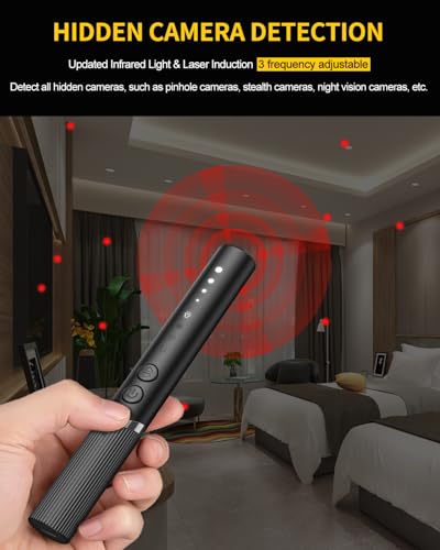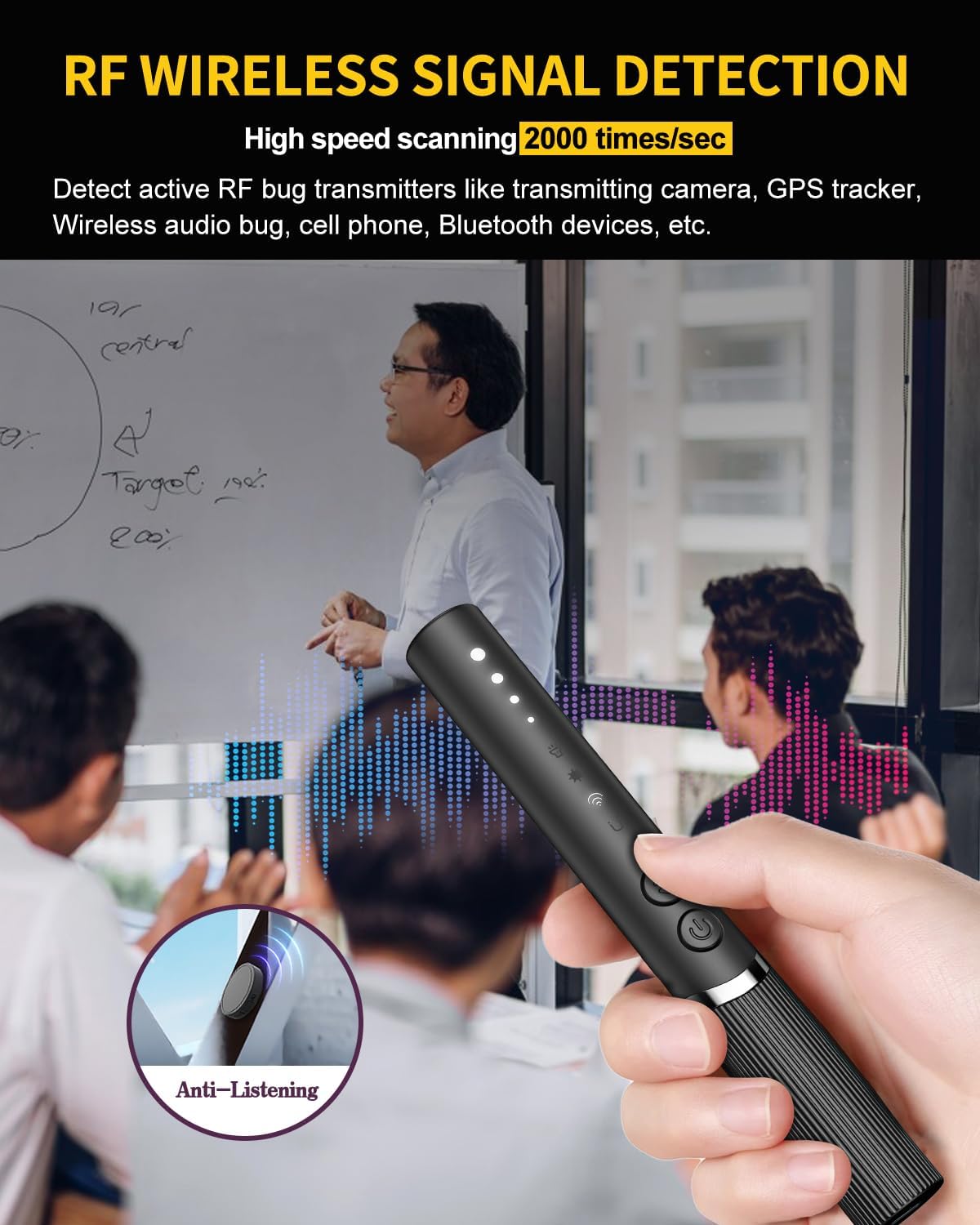 - Más rápida y precisa: la última generación de chips AI y luz infrarroja, las tecnologías de sensores se basan en la demanda del mercado, el detector de errores y cámaras ocultos diseñado para tu privacidad, hace posible encontrar cámaras ocultas, dispositivos de escucha y grabación, errores ocultos, rastreadores GPS, etc