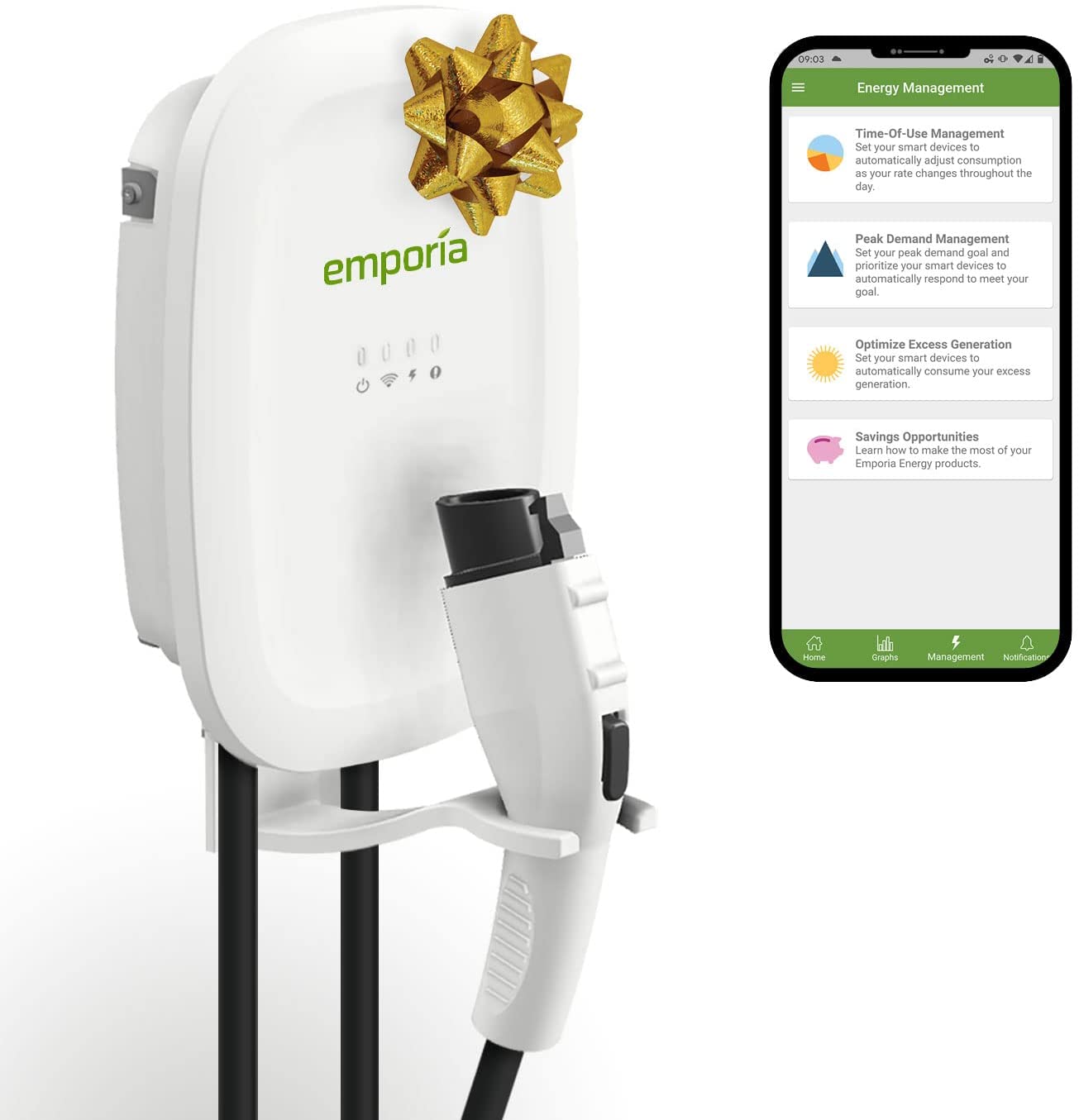Emporia Smart Level 2 EV Cargador | 16/32/40/48 Amp | Cargador de vehículo eléctrico con WiFi EMEVSE1B