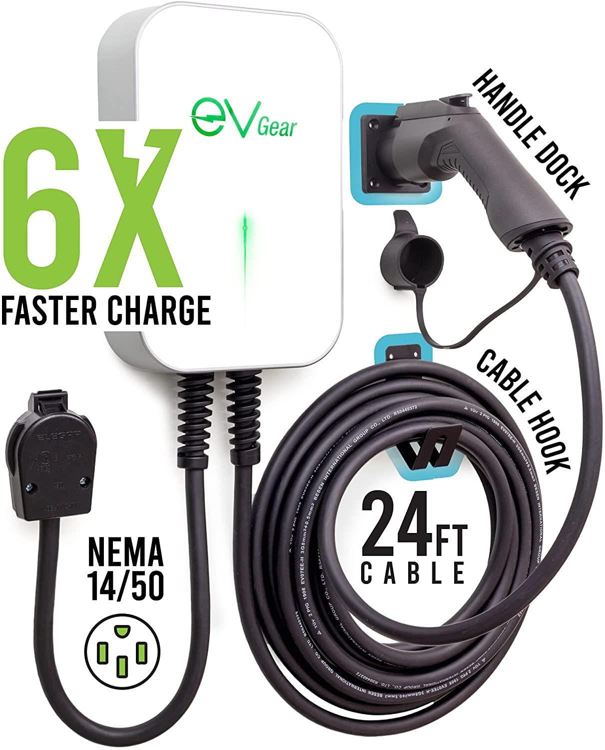 EV Gear Level 2 Cargador de vehiculo electrico 40AMP 240v, 25Ft de Cable, NEMA 14-50 Wall Plug