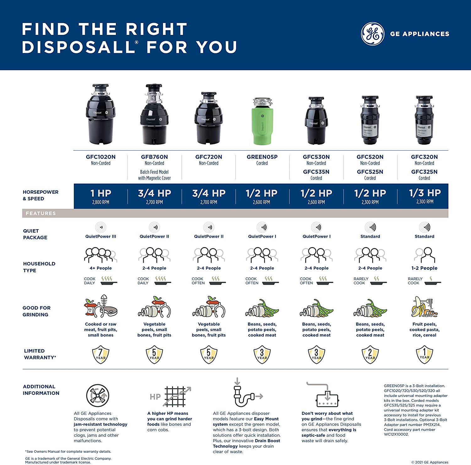 GE Eliminación de basura de alimentación por lotes, 3/4 caballos de fuerza y 2.700 RPM, bueno para moler, sin cable GFB760N