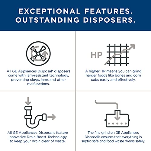 GE Eliminación de basura de lujo de alimentación continua, 1 caballo de fuerza y 2.800 rpm, bueno para moler GFC102V