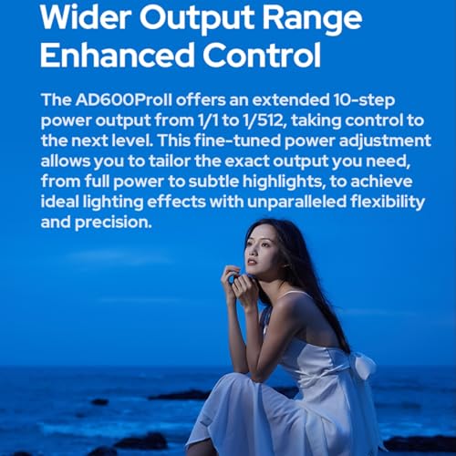 - Rango de salida más amplio, control mejorado: el AD600ProII ofrece una salida de potencia extendida de 10 pasos de 1/1 a 1/512, tomando el control al siguiente nivel. Este ajuste de potencia ajustado le permite adaptar la salida exacta que necesita, desde toda la potencia hasta reflejos sutiles, para lograr efectos de iluminación ideales con flexibilidad y precisión sin igual.