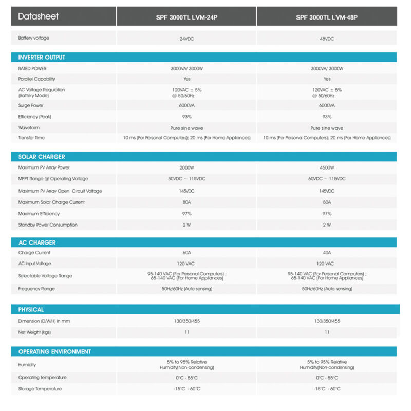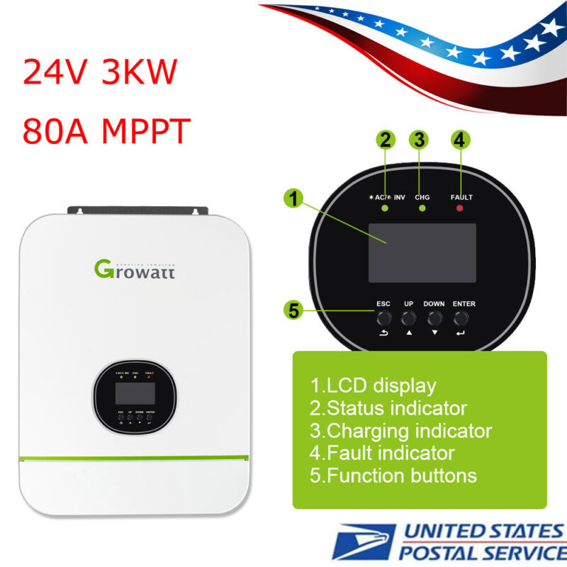 Growatt 24V 3KW Split Phase Solar Inverter 80A MPPT Solar Charge Controller