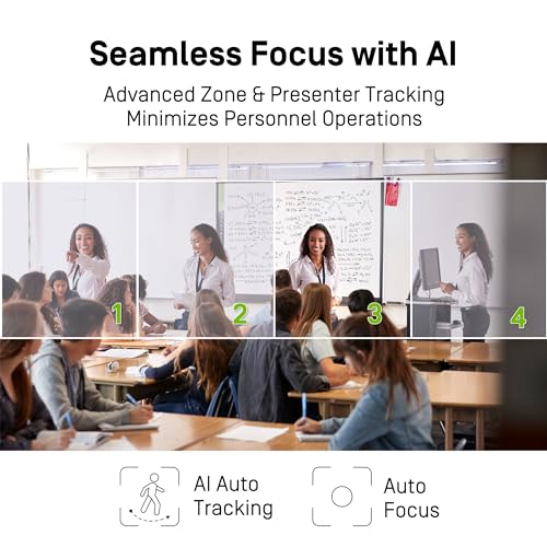 - 【Seguimiento automático de IA e interacción fácil】 El seguimiento avanzado de IA sigue suavemente los altavoces y captura sesiones de pizarrón, optimizando el aprendizaje interactivo y la enseñanza remota con ajustes automáticos de ángulo y zoom.