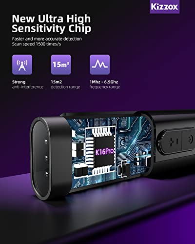 - Detector avanzado de dispositivos ocultos: el detector de cámara Kizzox K16 Pro es una nueva actualización de la precisión de detección y aspecto único elegante basado en el rendimiento reconocido por los usuarios.