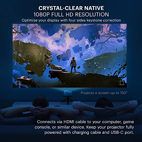 - Comodidad de bolsillo | Plug & Play o transmite y ve contenido en casa o en la carretera | Diseño portátil, funcionamiento silencioso y control remoto adicional para control sin estrés | Perfecto para noche de cine familiar, fiestas en el patio, presentaciones, viajes de campamento, juegos de pantalla grande y más allá | No necesita soportes, trípodes o soportes