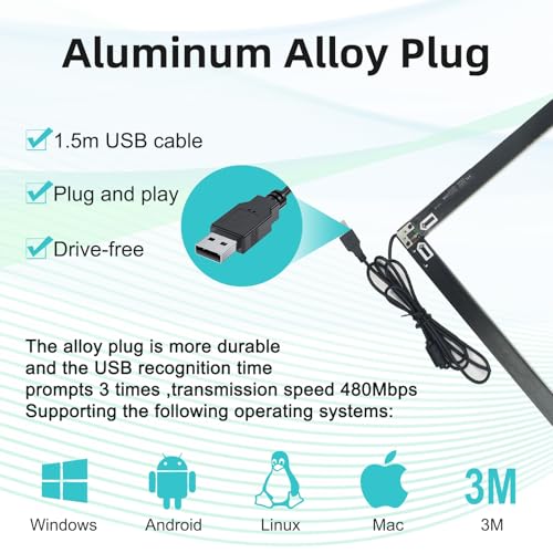 - Material de alta calidad: el marco táctil IR está fabricado con un marco negro de aleación de aluminio duradero, lo que garantiza una larga vida útil. Ofrece un rendimiento impecable sin puntos ciegos, puntos de interrupción, saltos o pausas, y cuenta con un tiempo de respuesta rápido de ≤10 ms para una interacción perfecta.