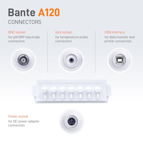 Medidor de pH de laboratorio Bante A120 | Medidor de pH de sobremesa | Precisión de pH ±0.002, calibración de 5 puntos, modo de medición ORP seleccionable, punto final de lectura automática, 1000