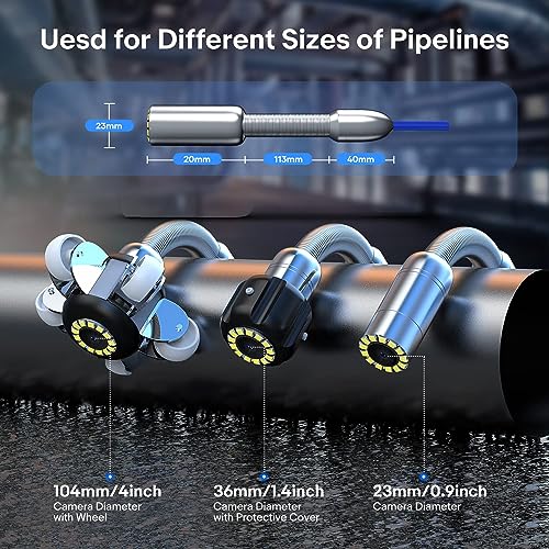 - Diseño portátil y perfecto: la sonda de cámara de inspección de tuberías duradera mide 0.9 pulgadas/0.906 in. Es adecuado para tuberías de más de 0.984 in, y la longitud de resorte ultra flexible de la cámara de 4.7 pulgadas/4.724 in le permite pasar fácilmente a través de una variedad de tubos curvos. Estuche de transporte portátil para almacenar todos tus accesorios. La última tecnología de almacenamiento permite una fácil liberación o enrollamiento de cables.