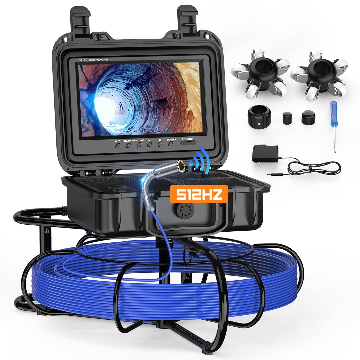 Oiiwak Cámara de alcantarillado con localizador, cámara de inspección de tuberías de 165 pies/164.0 ft con transmisor Sonde de 512 Hz IP68 impermeable conducto de drenaje Cámara de serpiente de