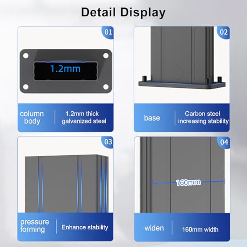 - Ahorro de espacio: la columna de carga es de 8.84 pulgadas de largo, 4.5 pulgadas de ancho y 59.05 pulgadas de alto, ocupando un área pequeña de solo 0.276 pies cuadrados, lo que ahorra mucho espacio
