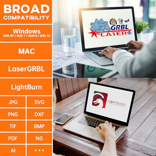 - Amplia compatibilidad: el SCULPFUN S9 Pro es compatible con varios software de grabado maduro, como LaserGRBL, LightBurn, Benbox, GrblController, LiteFire. Es compatible con el grabado en modo PWM, el sistema Windows y el sistema MAC (LightBurn). El formato de archivo de grabado como JPG, PNG, DXF, SVG, AI, código G, NC, BMP, etc. son compatibles.