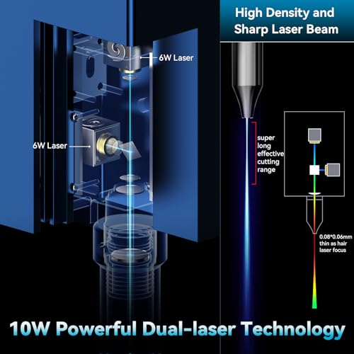 - Alta precisión: Con una placa base de 32 bits y motores paso a paso, esta máquina grabadora láser ofrece una precisión excepcional y un funcionamiento suave. Enfoque láser ultrafino de 0.002 in y precisión de 0.000 in para un trabajo de reproducción más detallado y realista.