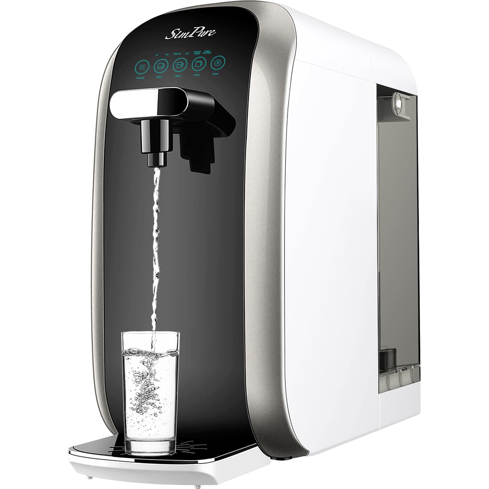 SimPure Y7P-BW Sistema de purificación de filtración de agua de ósmosis inversa para encimera UV, filtro de agua RO de 4 etapas, dispensador de agua sin botella, 4: 1 puro para drenar, libre de BPA (no requiere instalación)