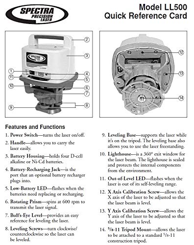 - El kit incluye un transmisor láser LL500, receptor de lectura digital HL700, abrazadera de varilla C70, baterías alcalinas, estuche de almacenamiento rígido y guías de usuario