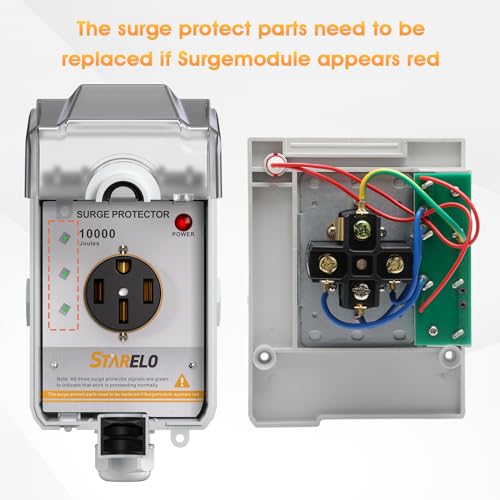 STARELO Caja de toma de corriente RV de 50 amperios con protector de sobretensiones impermeable (10000 julios), receptáculo NEMA 14-50R 125/250 voltios, con protección contra sobretensiones US-14-50R&Surge Protector