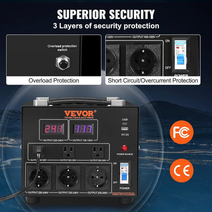 Transformador convertidor de voltaje VEVOR, 5000W, transformador elevado/descendente de alta resistencia, convierte de 110 voltios a 220 voltios y de 220 voltios a 110 voltios