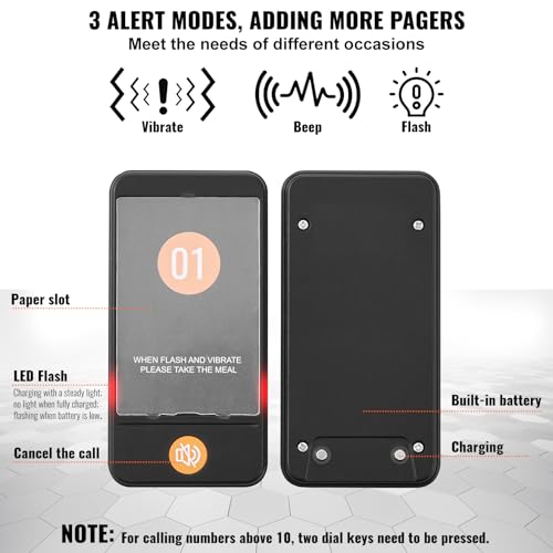- Rendimiento excepcional: El sistema de localización de restaurantes consta de un transmisor de teclado táctil inalámbrico de 98 canales y 24 buscapersonas. Los clientes no necesitan hacer cola, mantener el distanciamiento social y mejorar la eficiencia.