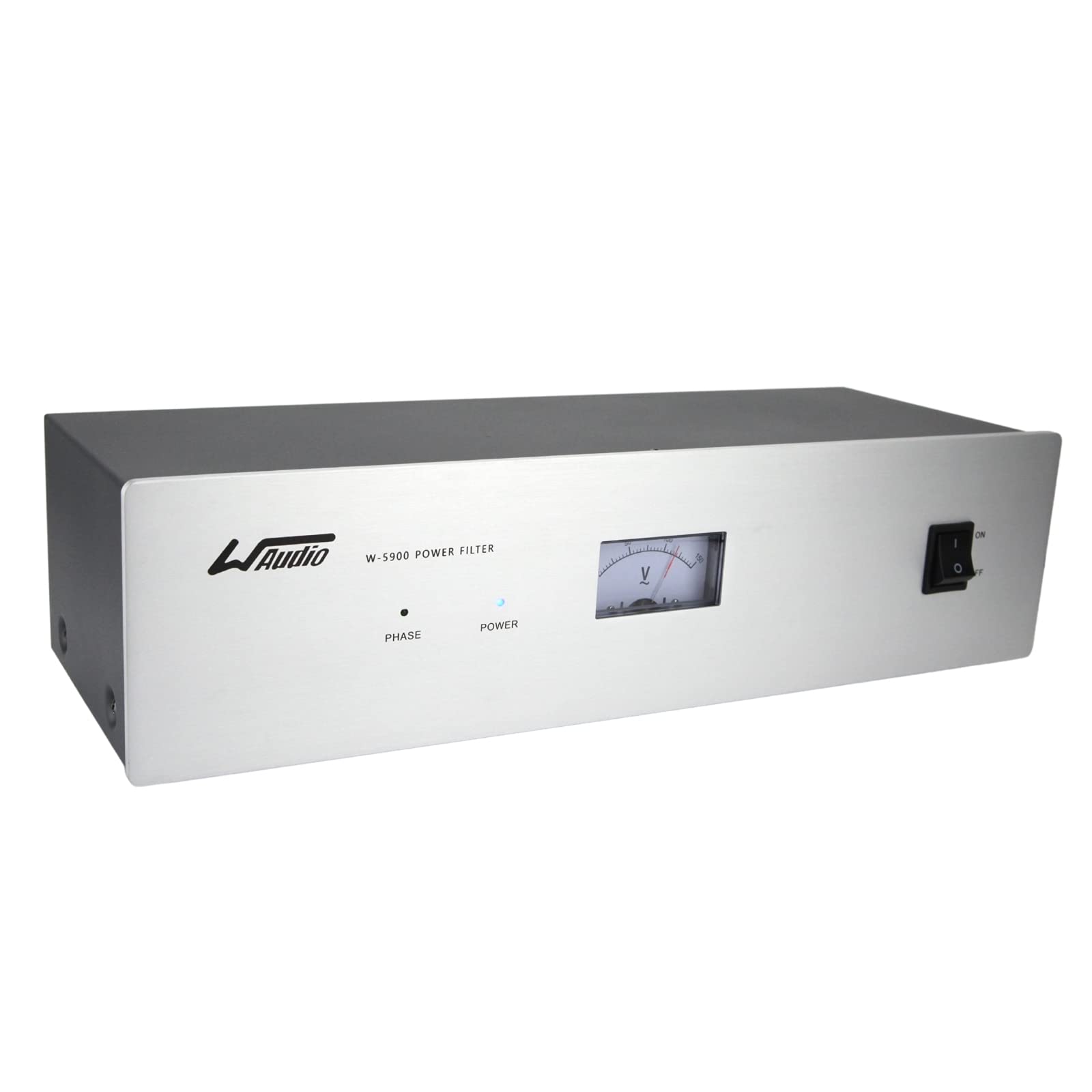 WAudio Acondicionador de energía de ruido de CA - Purificador de red de audio y video Filtro de ruido Protector de sobretensiones con enchufes estándar de EE. UU. (plata)