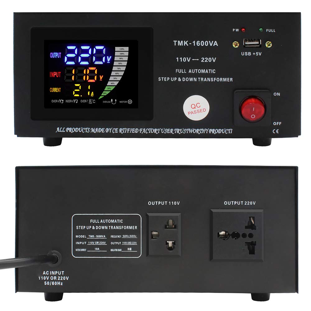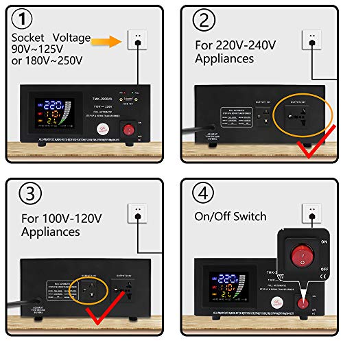 - Inteligente AUTO subir y bajar: Tecnología de conversión automática de voltaje: el transformador reconoce automáticamente el voltaje de entrada y convierte el voltaje correspondiente y la solución fácil para convertir voltajes de 110 voltios a 220 voltios o de 220 voltios a 110 voltios.